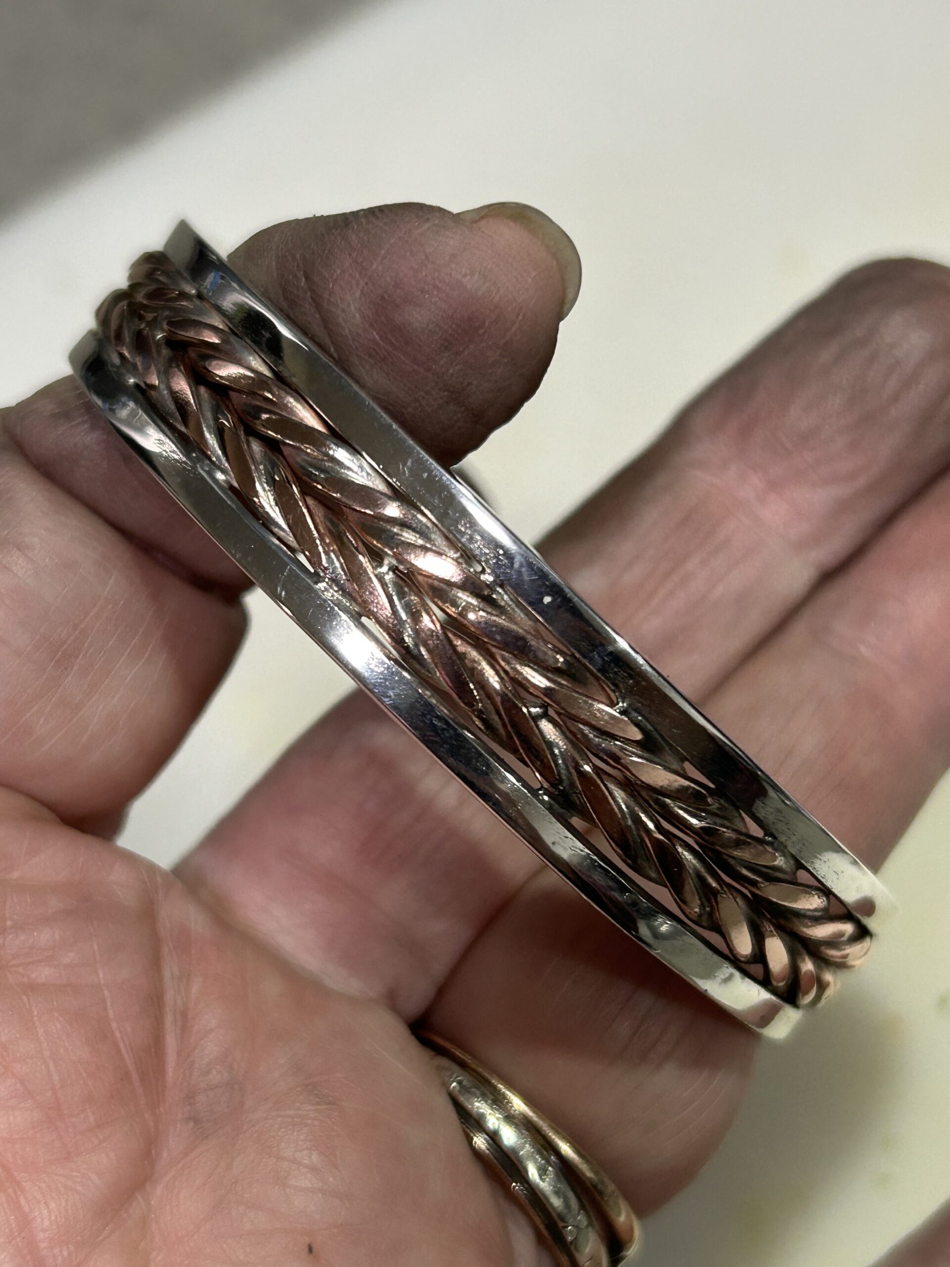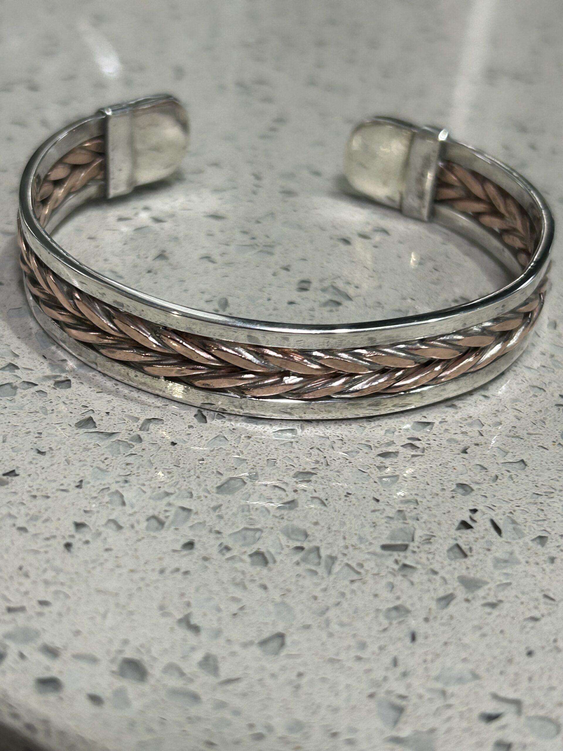 SOLD Our limited 100yr old Coen Goldmine twisted copper is framed in a heavy square sterling silver wire.